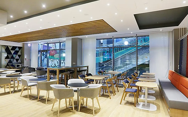 Комплектация более 400 м2 общественных зон : лобби, ресторан, бар, пе-реговорные. И номерного фонда 9 этажей на 243 номера.